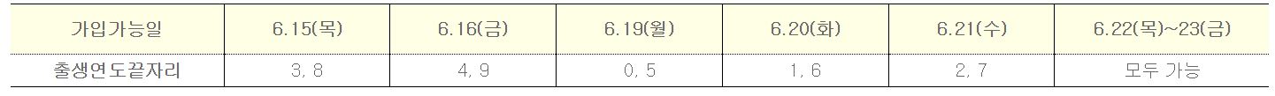 23/6/15~23 출생연도 기준 5부제에 따라 가입신청