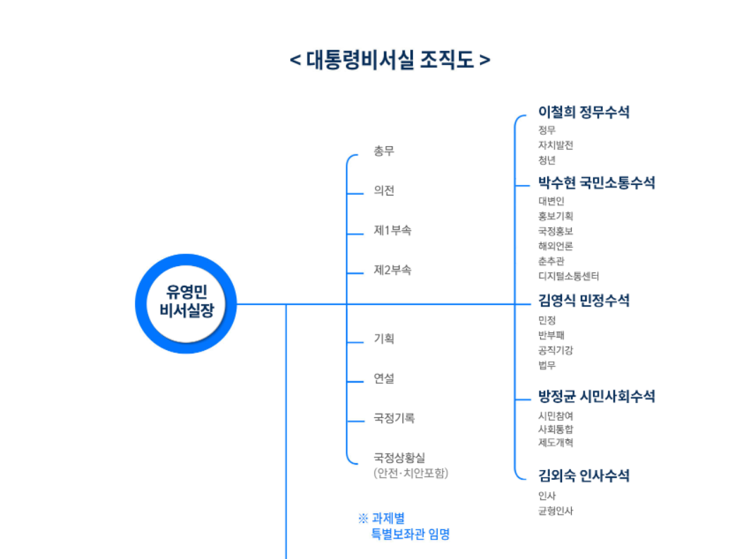 청와대 조직도입니다. 대통령이 꾸린 조직인만큼 단합 화합이 되어야겠으며 실력은 당연 탄탄히 밑받침이 되어야겠습니다.
