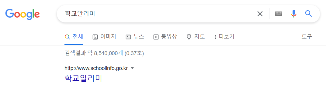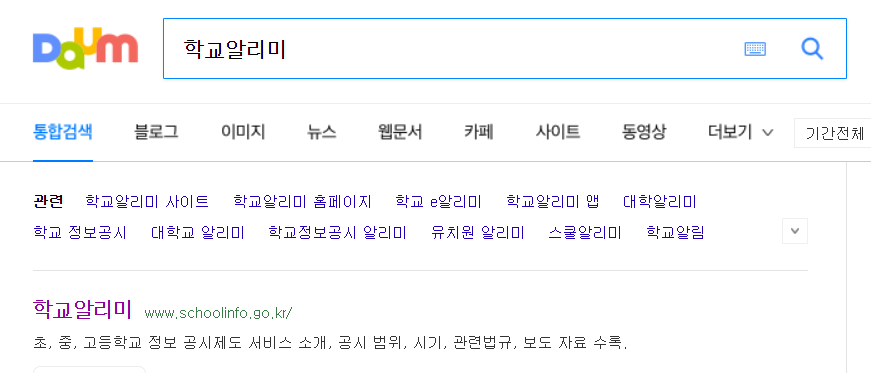 평소 자주 이용하는 포털 검색창에 학교알리미를 입력하고 상단에 나오는 학교알리미 홈페이지에 접속하면 됩니다.