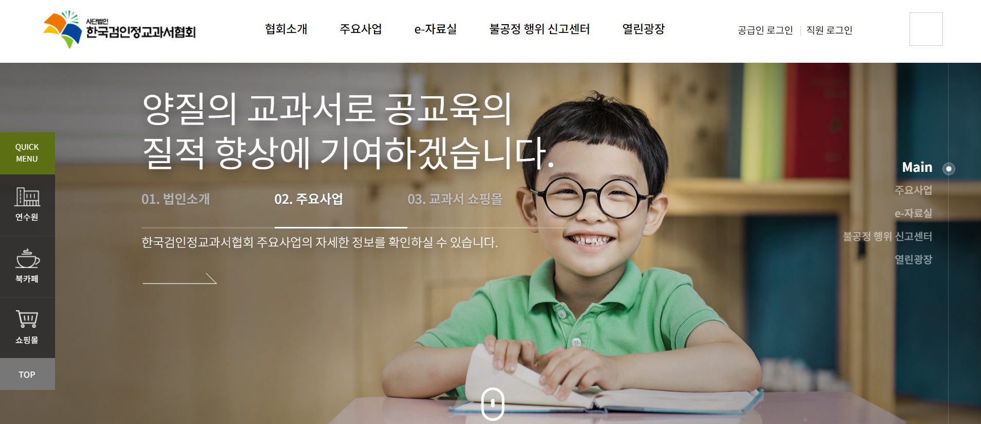 홈페이지에가면 교과서 구입을 할 수 있게 쇼핑몰이 있습니다.