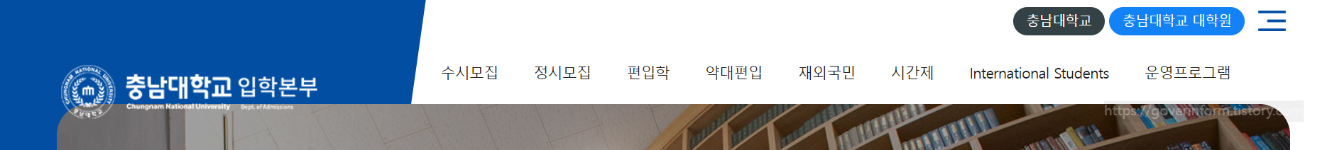 충남대 입학처 홈페이지 바로가기 https://ipsi.cnu.ac.kr/intro.html