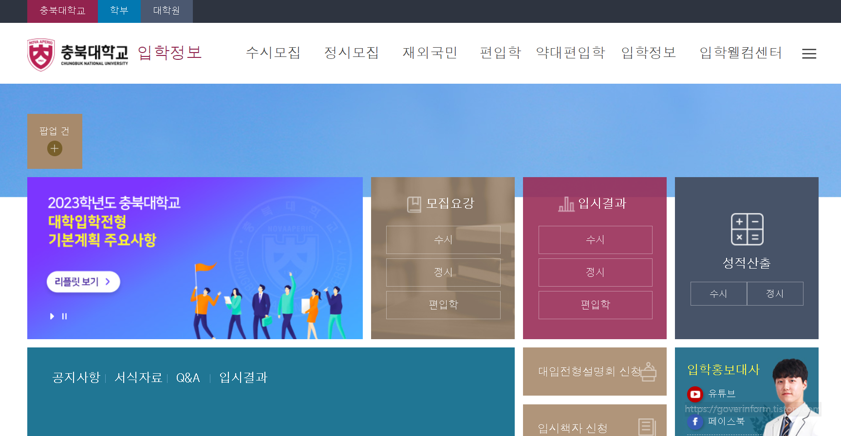 충북대 입학처 홈페이지 바로가기