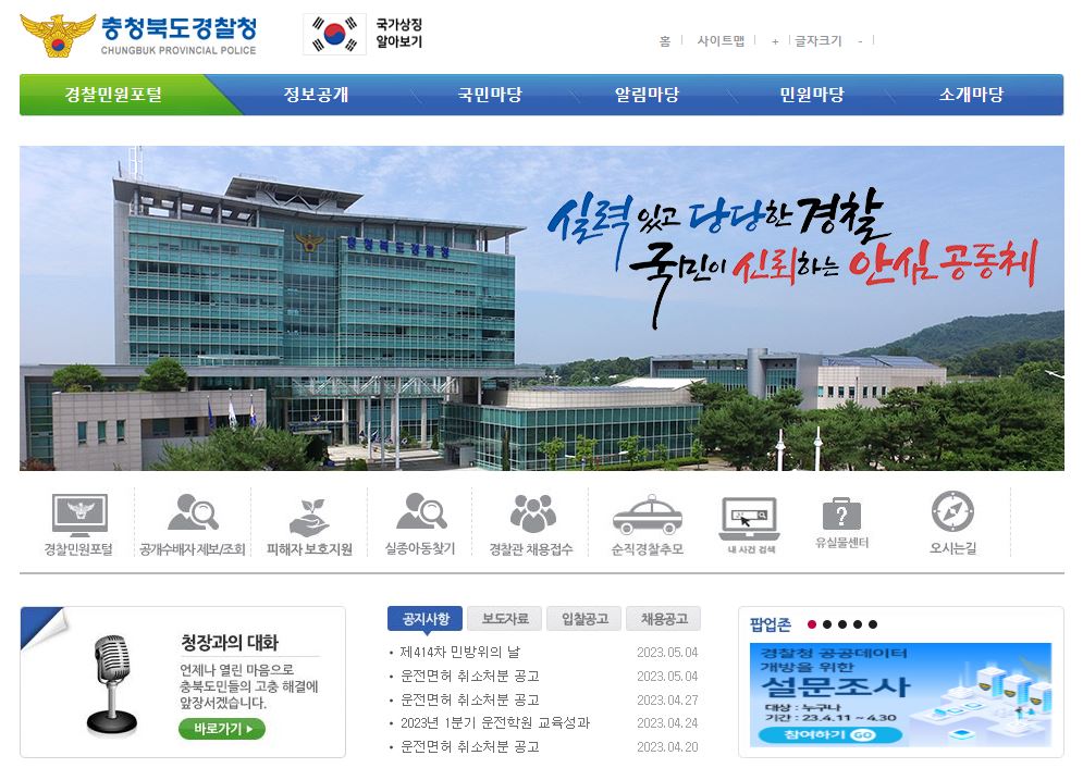 충청북도경찰청 홈페이지에는 다음과 같은 소식이 준비되어 있습니다.