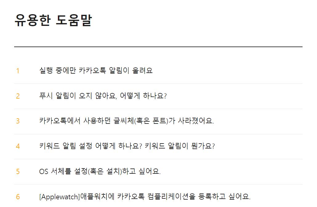 아래처럼 다양한 서비스에 대한 문의를 할 수 있는 곳이 바로 카카오톡 고객센터 홈페이지입니다.