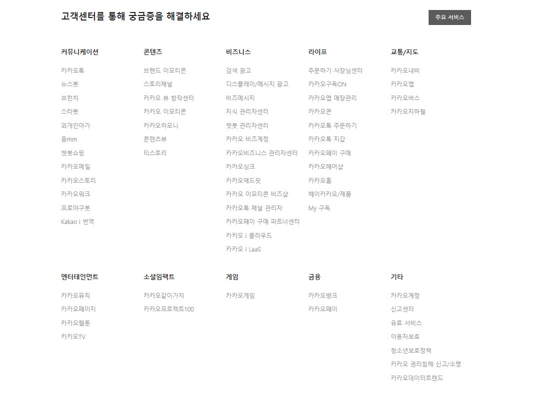 카카오톡 고객센터 주요 서비스 ▽