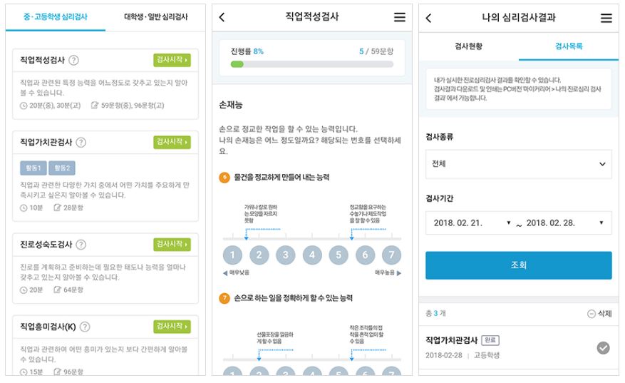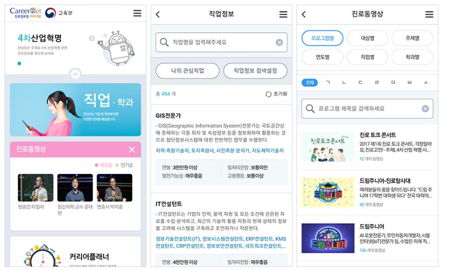 커리어넷은 인터넷 홈페이지 뿐만 아니라 커리어넷 앱을 운영하고 있습니다. 커리어넷 주요 서비스를 모바일 앱에서도 이용 가능하오니 필요한 분은 애플 앱스토어나 구글 플레이스토어 또는 원스토어에서 커리어넷 검색 후 이용하시기 바랍니다.