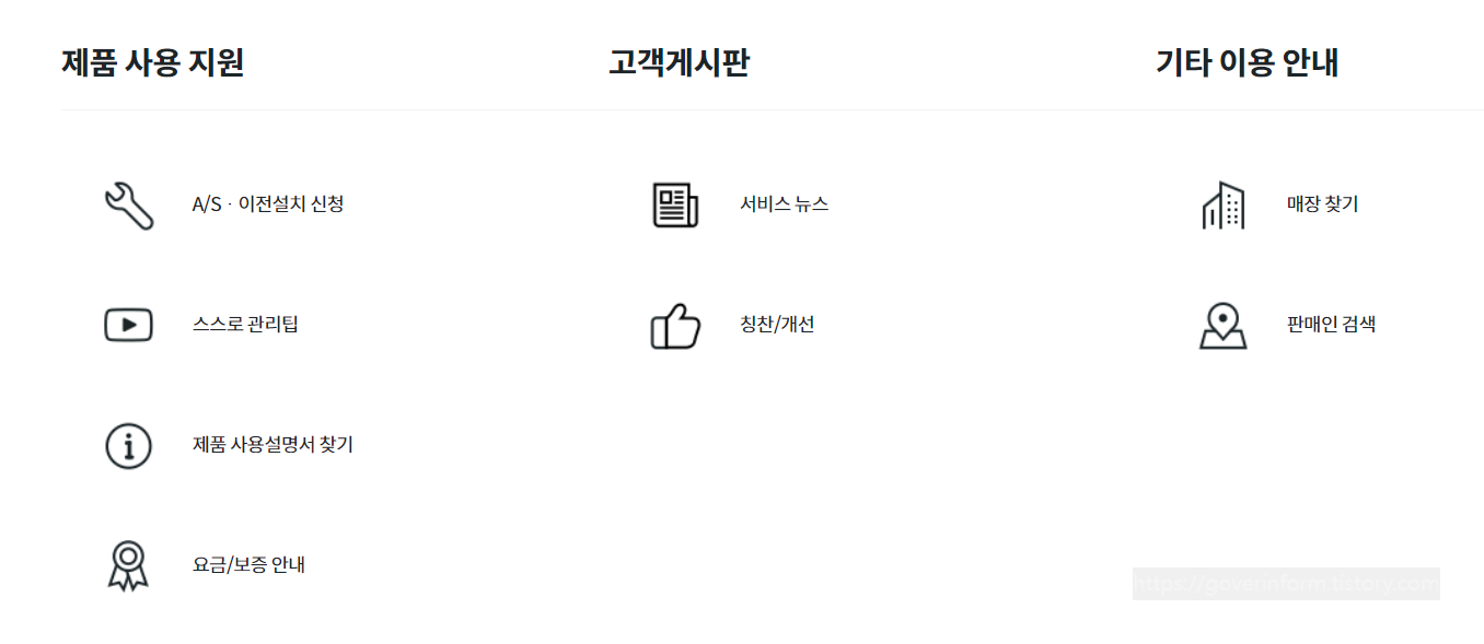 제품 사용이나 관리하는 방법, 코웨이 제품 사용설명서가 필요한분들, 코웨이 매장이나 판매인을 알고싶은분들은 고객지원 홈페이지를 이용하면 다양한 서비스를 이용할수 있습니다.