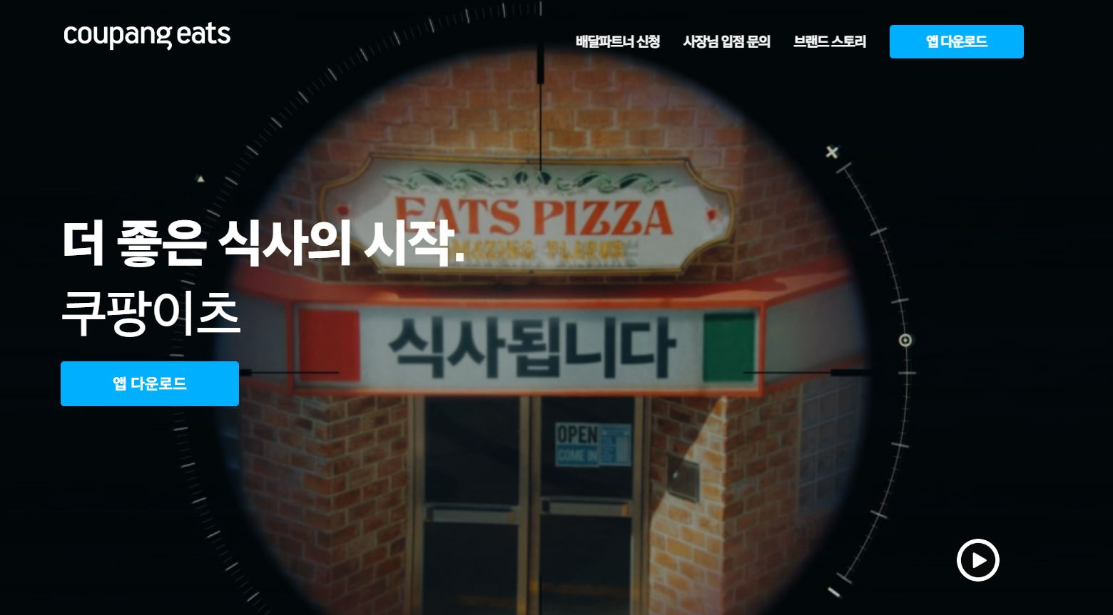 쿠팡이츠 홈페이지 첫화면은 다음과 같이 구성되어있다.