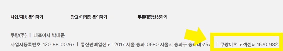 쿠팡이츠 홈페이지 가장 하단에 보면 쿠팡이츠 고객센터 전화번호가 있다. 고객센터에 전화해서 문의를 해도 되고 자주묻는질문에서 찾아봐도된다.