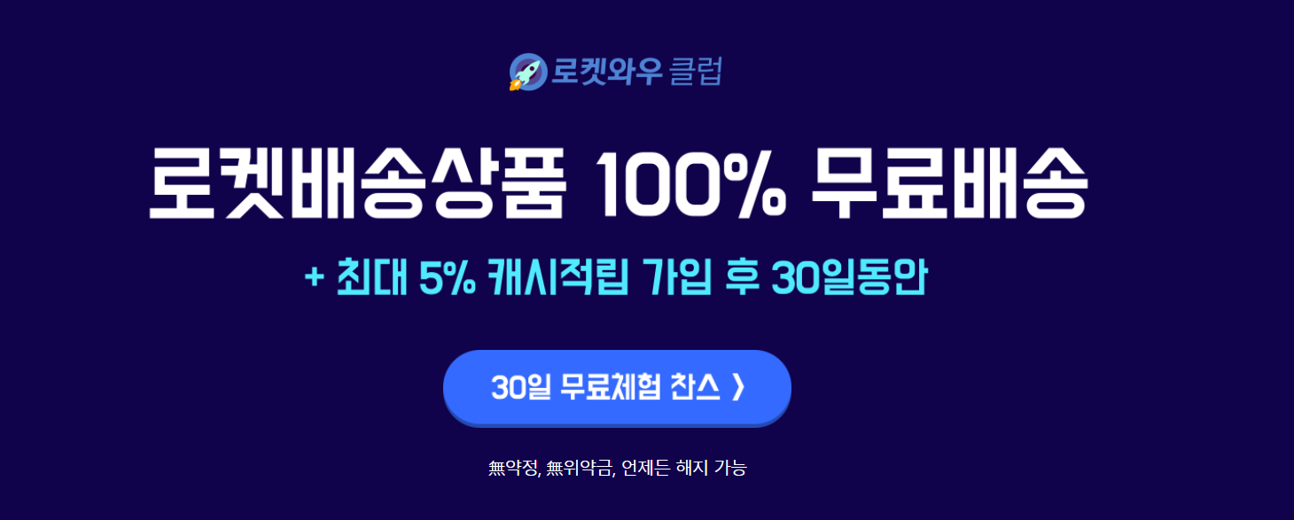 단 로켓와우를 이용하기 위해서는 서비스에 가입해야 되는데 가입후 30일은 무료로 체험할 수 있습니다. 생각만큼 편리한 서비스이긴 합니다 ^^ 상품을 받고 무료로 반품도 가능하니 고객입장에서는 이보다 더 편리한 서비스는 없을 것 같네요.. 호호^^