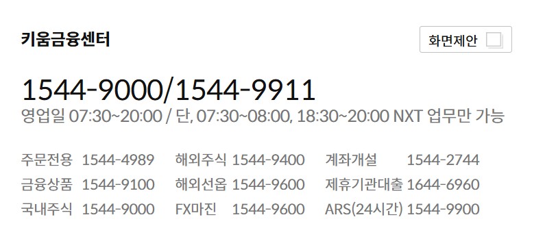 > ☎ 키움증권 고객센터 전화번호: 1544-9000 또는 1544-9911