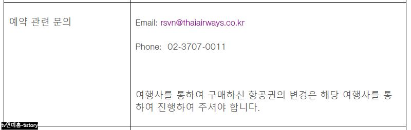 타이항공 고객센터 전화번호|항공편 스케줄 확인 바로가기