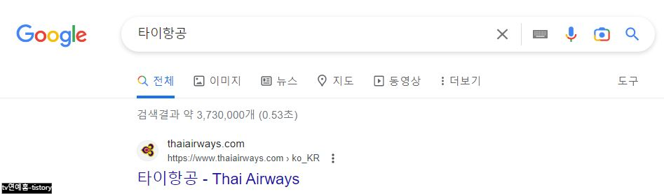 타이항공 항공편 스케줄 확인을 하기 위해서는 타이항공 홈페이지에 접근해야합니다. 구글 검색창에 '타이항공'을 입력하고 검색하면 하단에 타이항공 홈페이지 주소가 나옵니다. 여기에 접근하면 타이항공 홈페이지 이용이 가능합니다.
