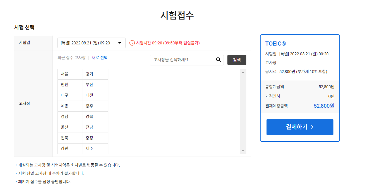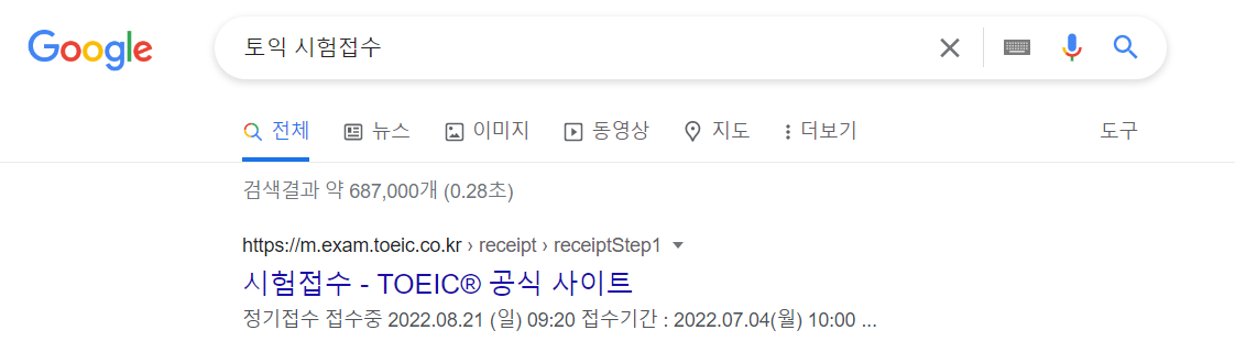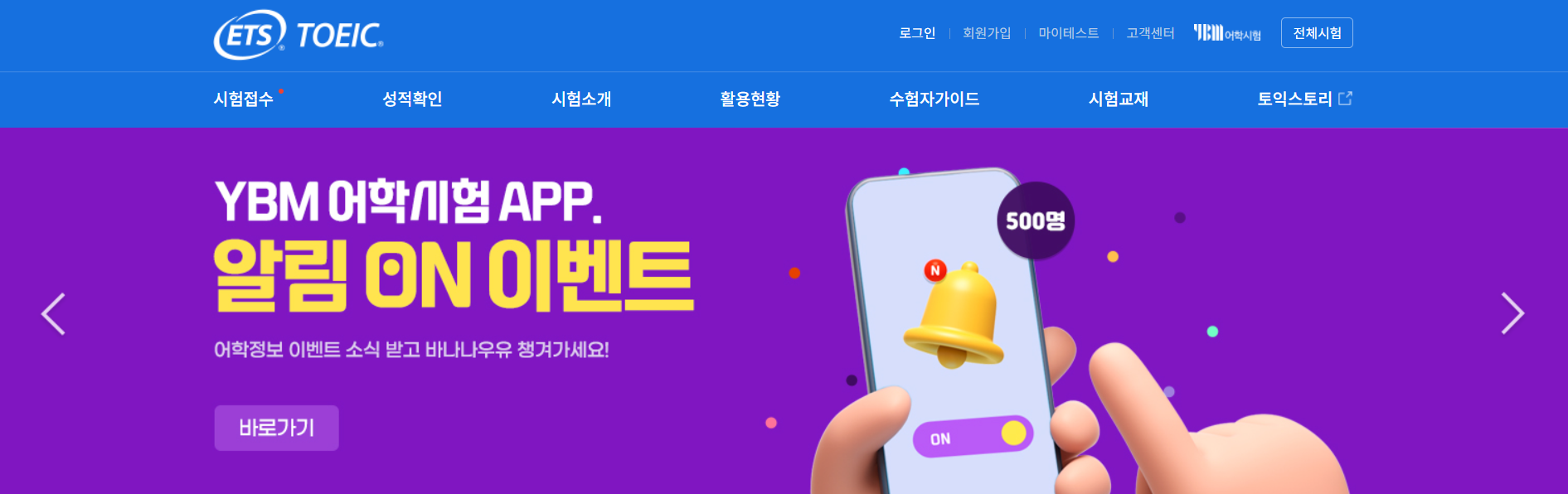 1) 토익 시험접수는 토익 공식 사이트에서 하면 된다. (https://exam.toeic.co.kr/)