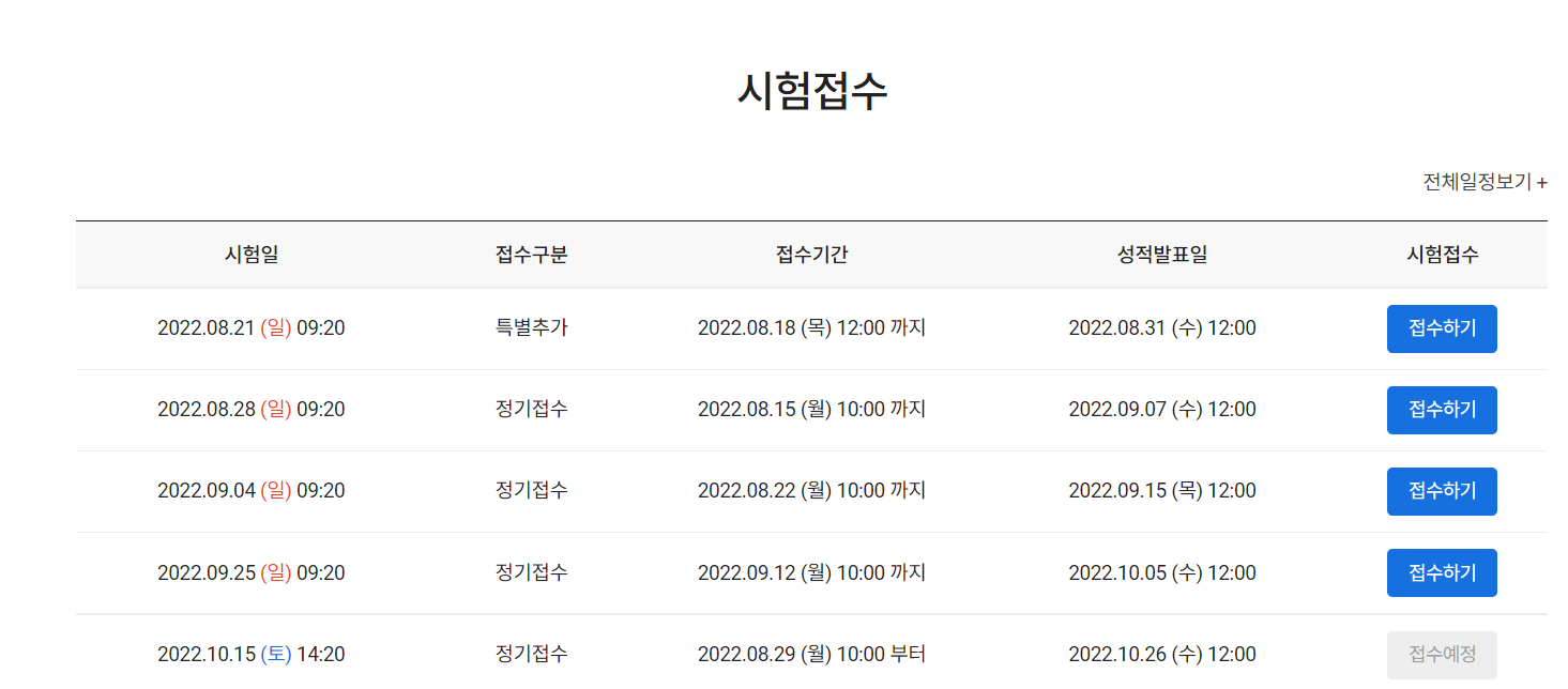 3) 다음 시험일정에서 원하는 시험일정을 확인하고 시험접수를 한다.