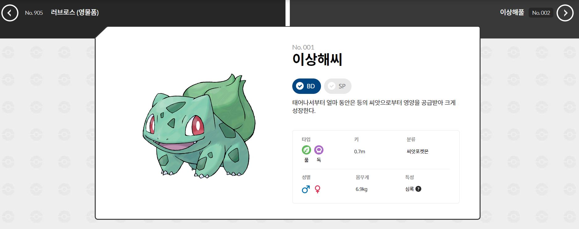사이트에 포켓몬 도감도 있어요. 포켓몬에 대한 상세한 설명을 해주네요~