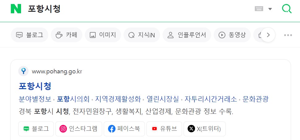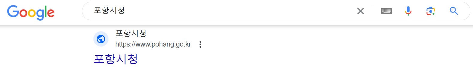 구글, 네이버, 다음 등 홈페이지에서 포항시청을 입력하고 포항시청 홈페이지 주소를 터치해서 홈페이지를 이용할 수 있습니다.