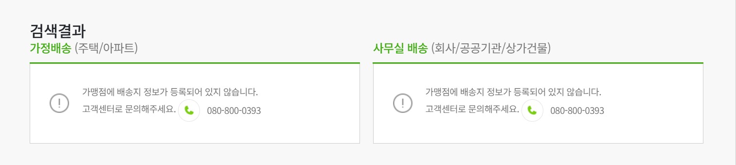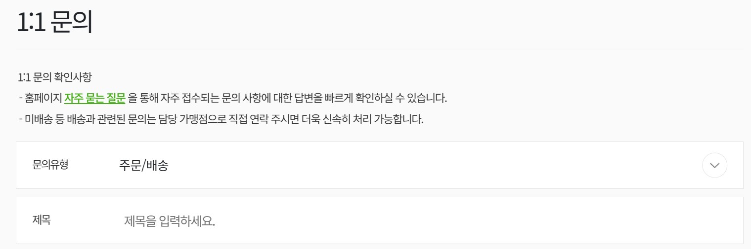 미배송 등 배송 관련 문의는 1:1 문의보다는 담당 가맹점으로 연락하는 것이 낫습니다.