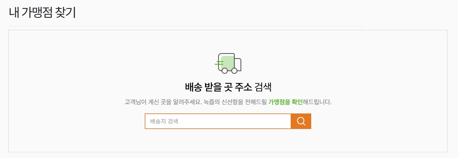 내가 배달 받을 곳 주소를 입력하면 해당 주소지 관할 가맹점을 바로 알려줍니다.