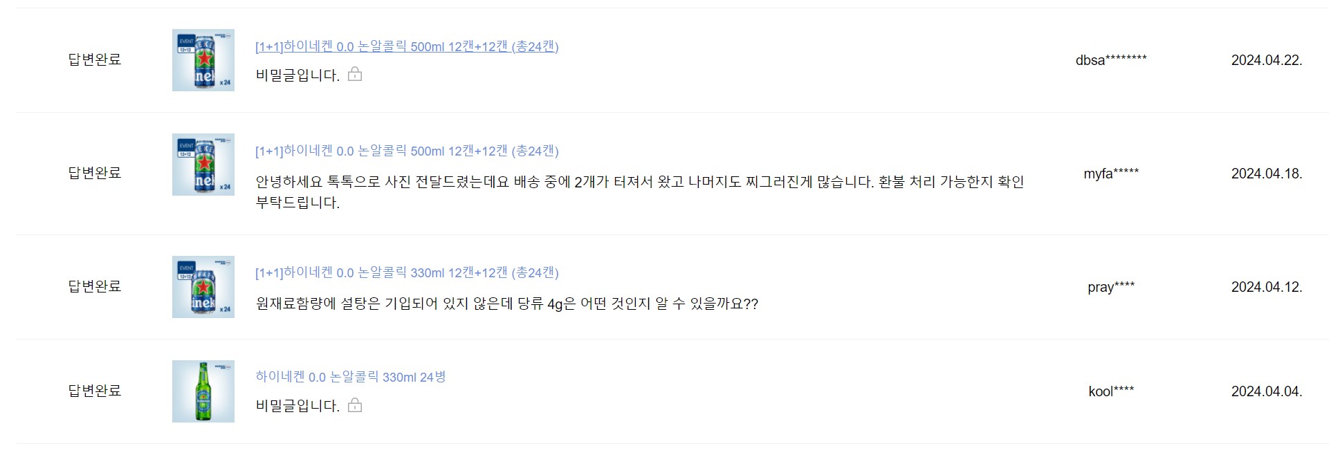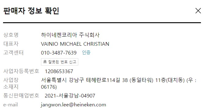 하이네켄 공식 홈페이지 > q&a에서 문의글을 등록하면 상담사가 수일 내에 답변을 드립니다.