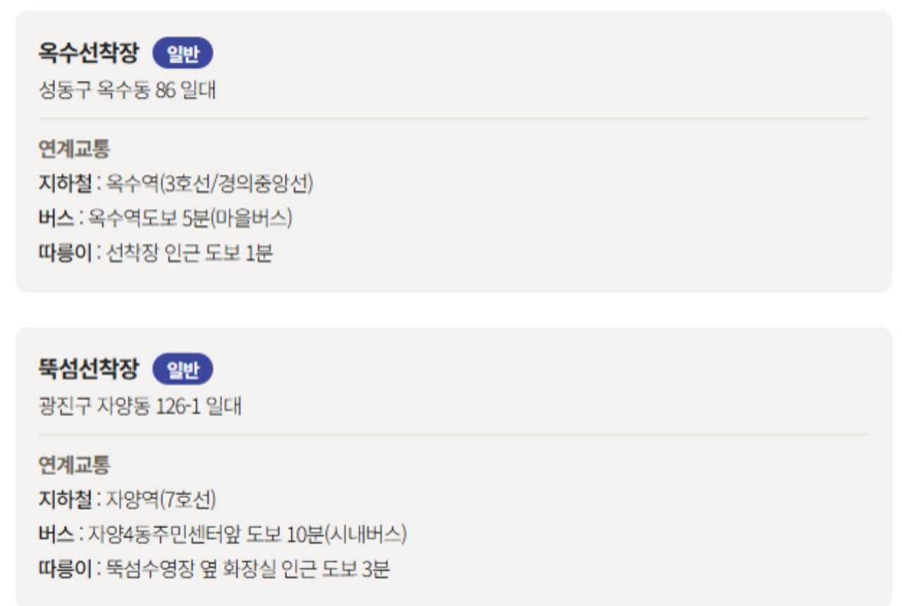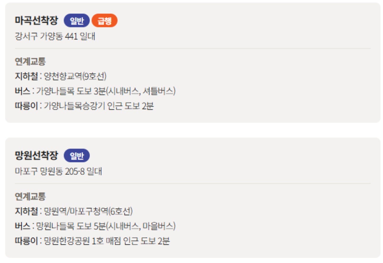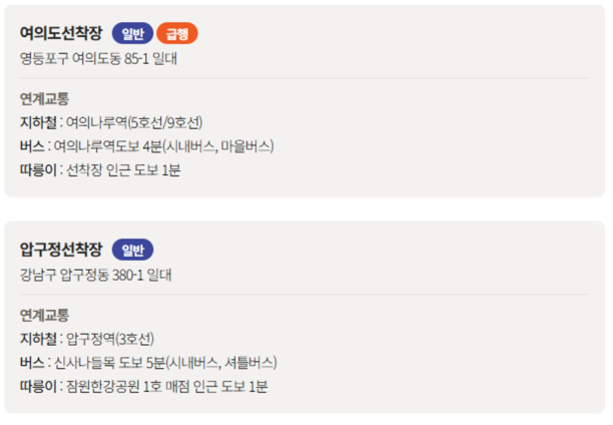 한강버스가 운행하는 선착장은 아래와 같아요.