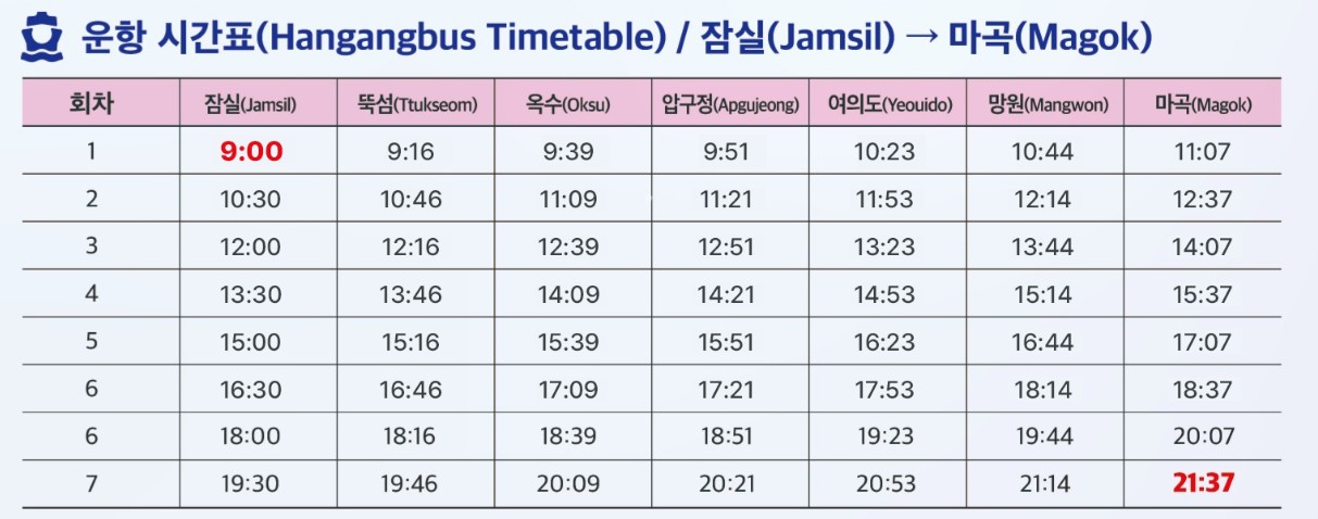 한강버스 시간표 알아보기