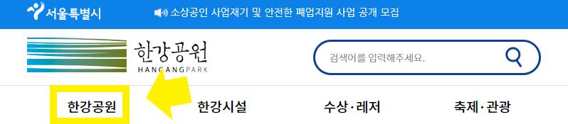 한강공원(한강사업본부) 홈페이지 첫화면에서 한강공원을 터치하면 해당 공원의 소개, 시설, 주차정보(주차요금), 찾아가는 길에 대해 상세하게 알려줍니다.