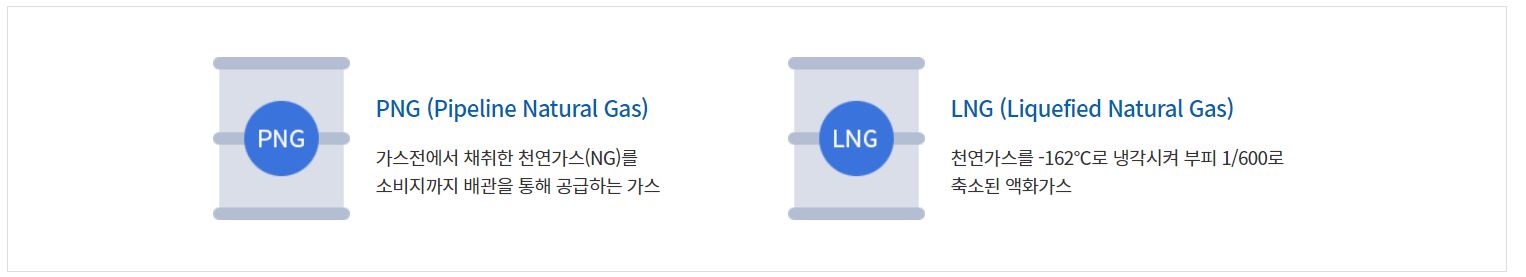 한국가스공사의 천연가스는 자연적으로 발생하며 지하에 있는 혼합으로 직접 체취 또는 액화천연을 기화시킨 기체상태의 연료용을 의미하며 생산지에서 소비지까지 유통형태에 따라 PNG와 LNG로 구분합니다.