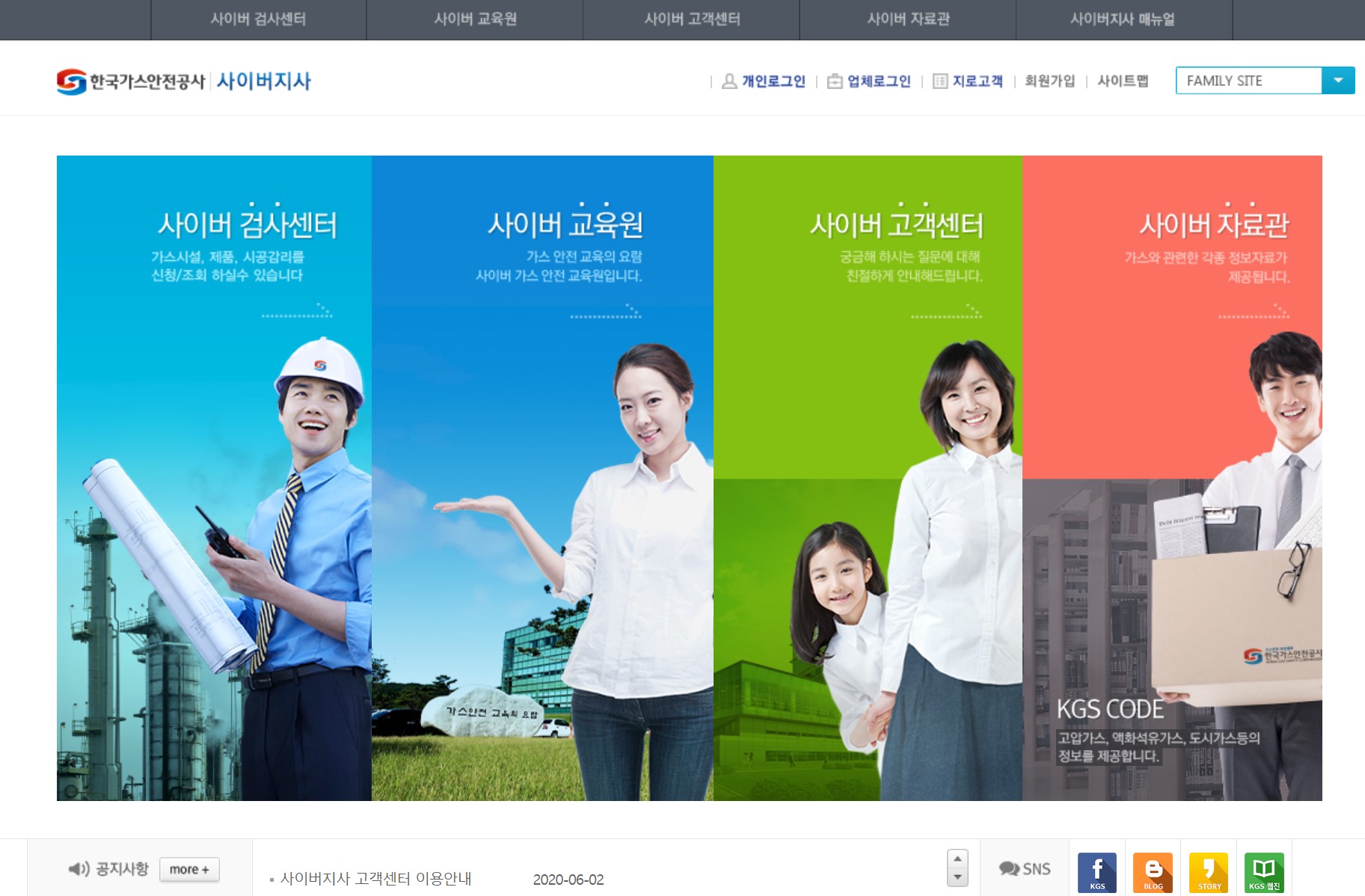 한국가스안전공사 사이버지사 검사센터 교육원 바로가기