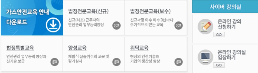 사이버 교육원은 한국가스안전공사에서 제공하는 교육을 수강할 수 있으며 사이버 강의실이 있어 온라인 강의 신청과 수강이 가능합니다.