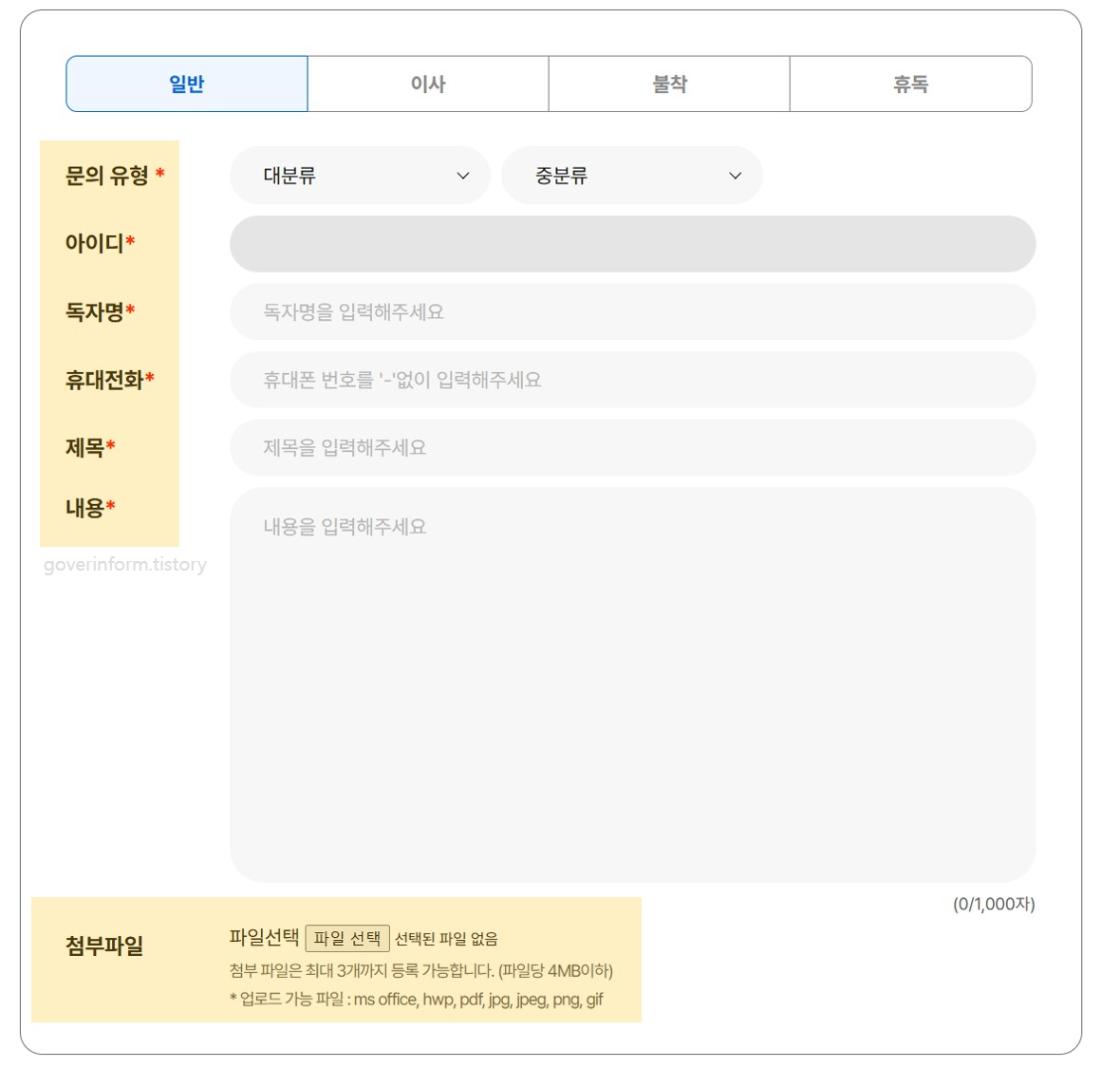 - 제목/내용(최대 1,000자)
