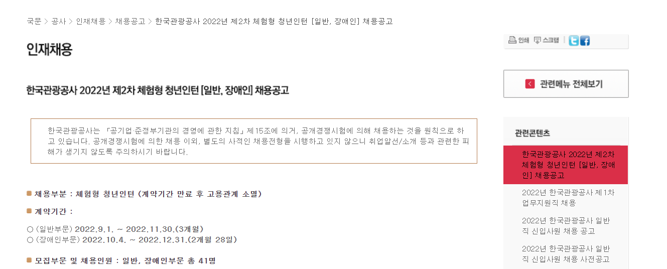 ▶ (지금) 한국관광공사 채용정보. 공고. 공모 확인하기