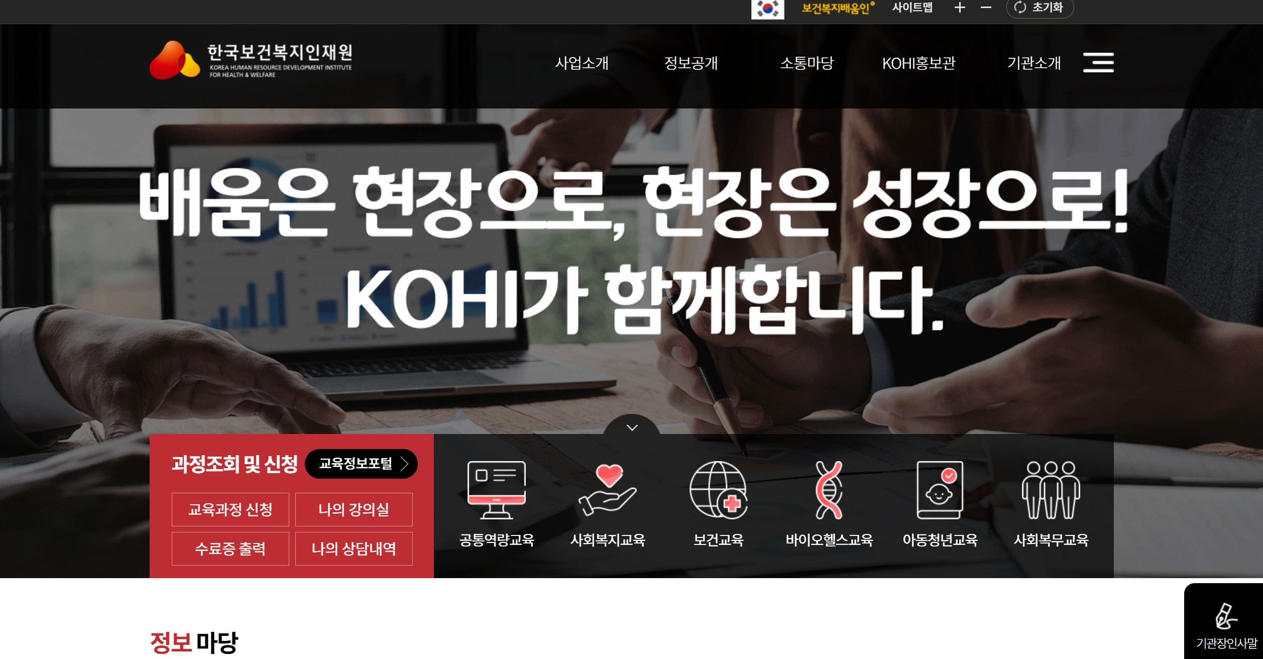 • 한국보건복지인재원 공식 홈페이지(https://www.kohi.or.kr)에 접속합니다.