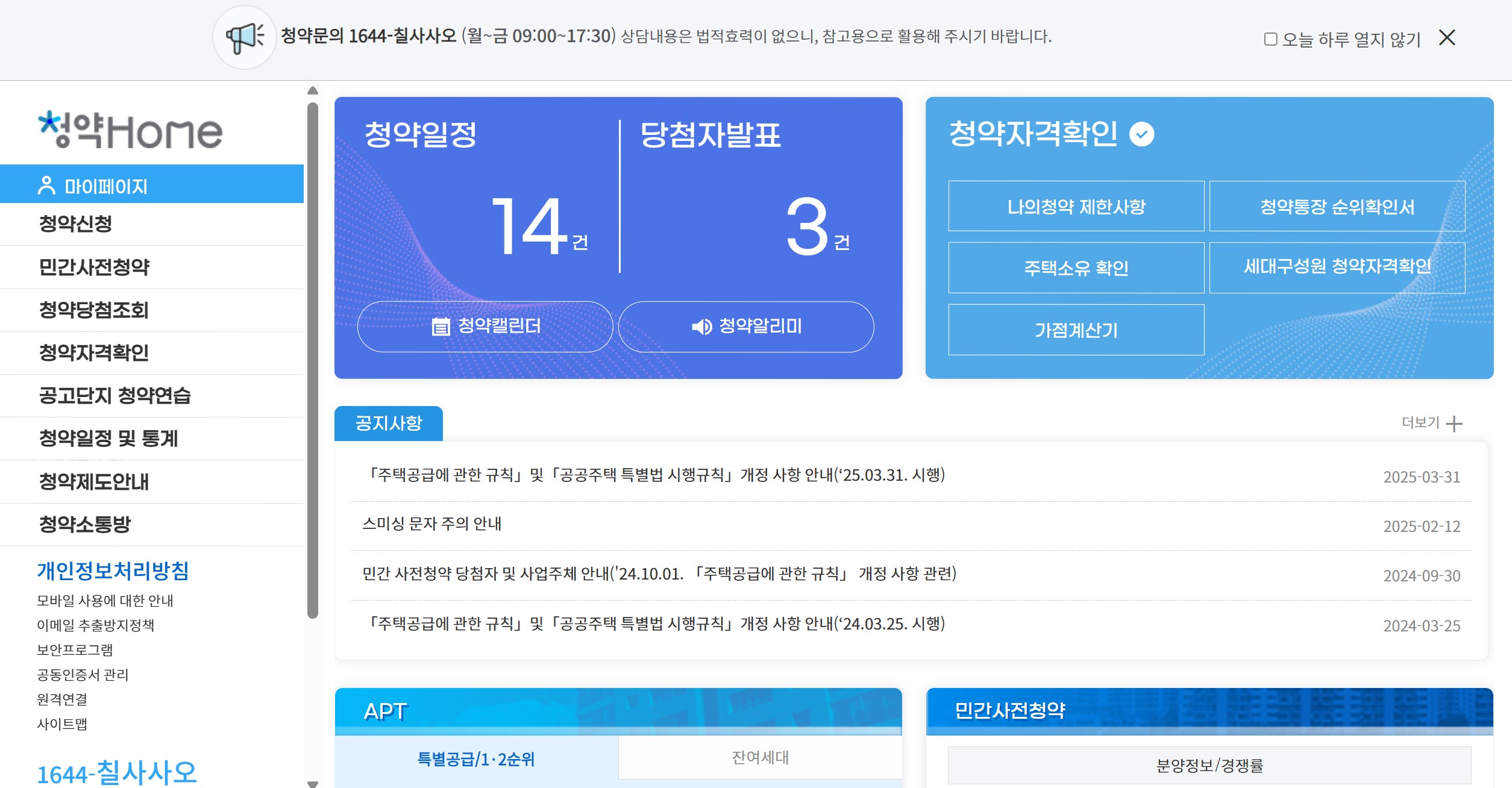 청약홈 홈페이지