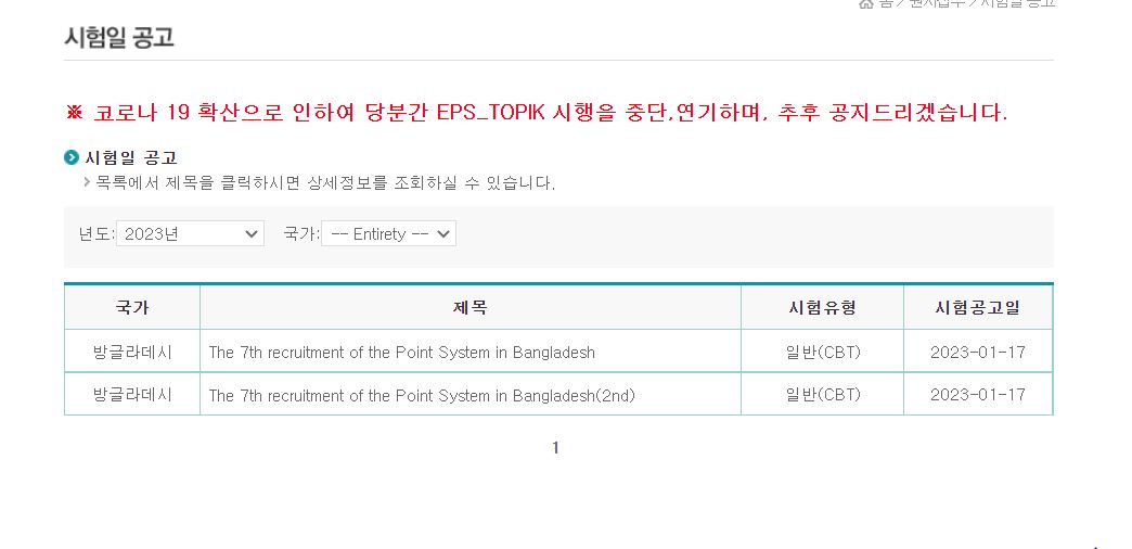 시험공고일은 1월 17일로 나와있습니다. 홈페이지를 참고하면 오늘날짜로 시험일 공고를 확인할 수 있습니다.