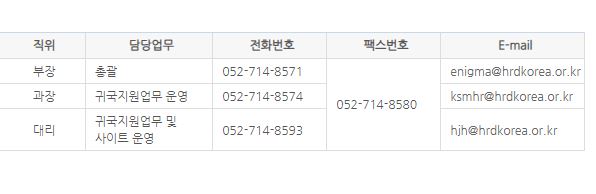 전화번호는 하단 표를 참고하시기 바랍니다.