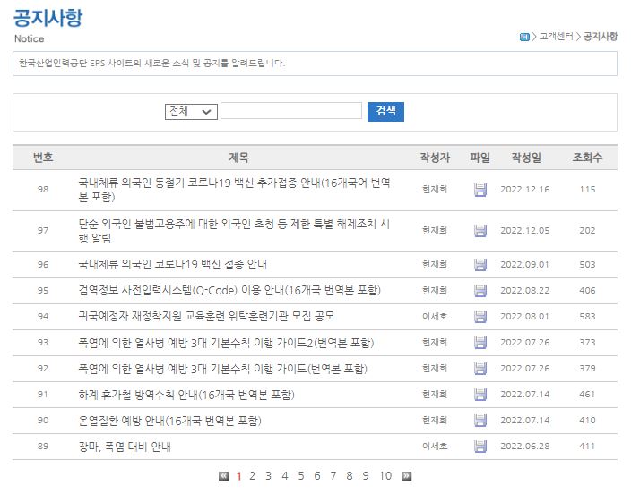 외국인근로자가 국내에 입국하기 전에 고용허가제인 EPS에 대한 설명, 입국 후 고용체류지원에 대한 것, 귀국준비, 교육프로그램, 취업 소개 등이 있습니다. 외국인 고용사업주는 EPS에 대한 설명, 외국어, 귀국지원안내등을 해줍니다. 이용 중 문의사항은 게시판을 이용하면 됩니다.