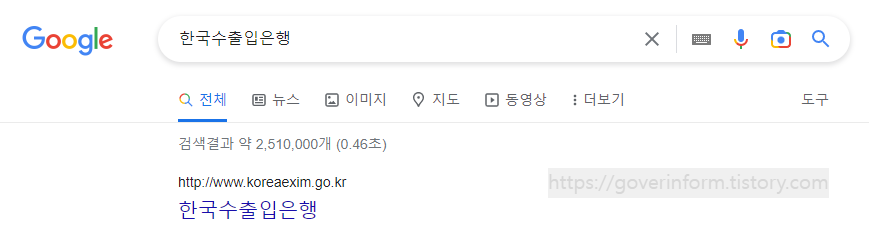 다음은 한국수출입은행 고객센터 이용을 위해 한국수출입은행 홈페이지에 접속하는 방법을 알려드립니다. 자주 이용하는 포털 검색창에 "한국수출입은행"을 입력하고 검색을 하면 주소가 바로 나옵니다.