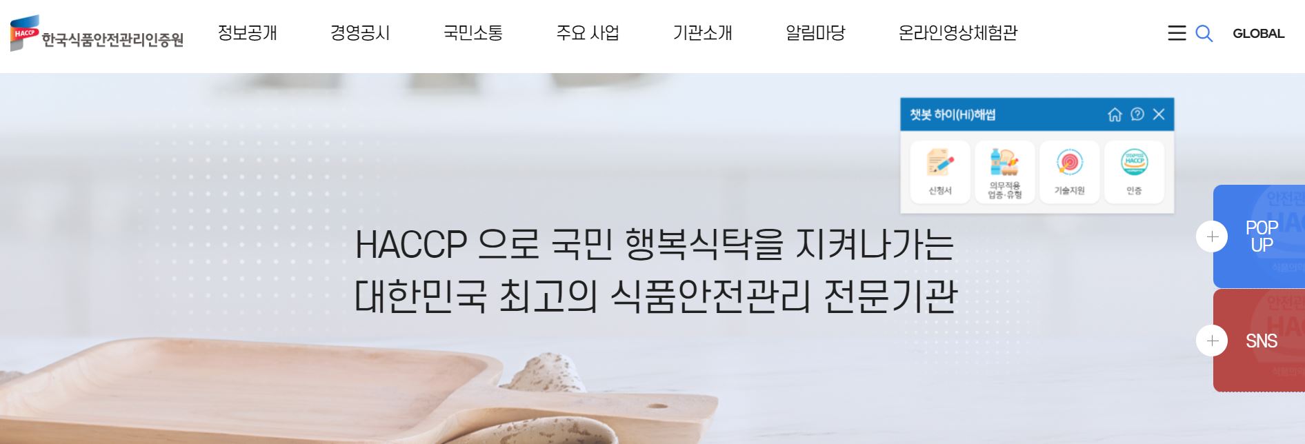 한국식품안전관리인증원에 대한 자세한 사항은 하단의 한국식품안전관리인증원 홈페이지를 참고하시기 바라며 문의사항은 하단 댓글창에 남겨주심 답변드립니다.