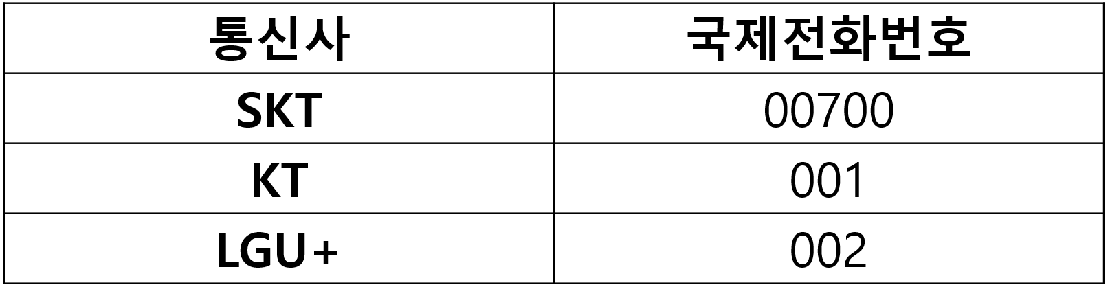 1. 먼저 한국 전화기로 통신사 번호를 눌러요. 아래 통신사 국제전화번호를 참고하세요.
