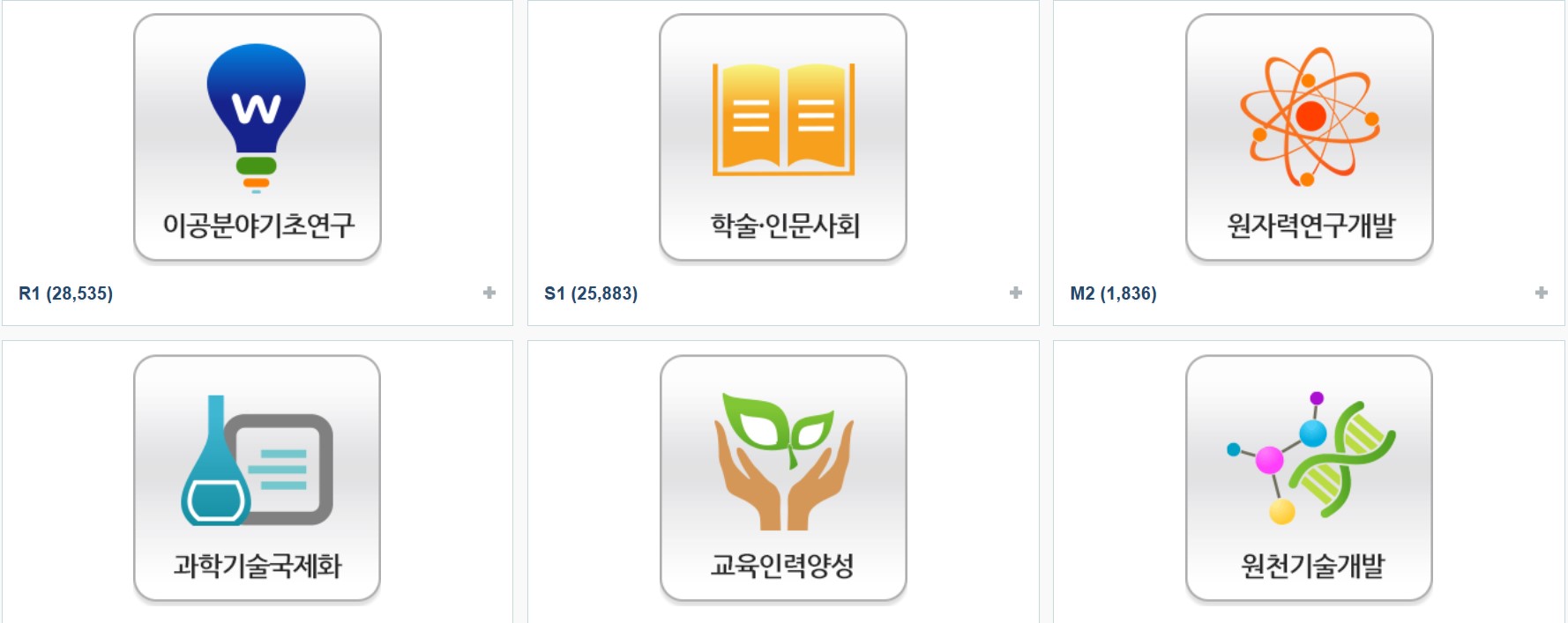 이공분야기초연구, 학술 또는 인문사회, 원자력연구개발, 과학기술국제화, 교육인력양성, 원천기술개발 등에 대한 자료 열람이 가능합니다.