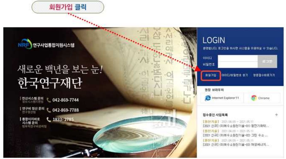 한국연구재단 신규 기관 등록 방법