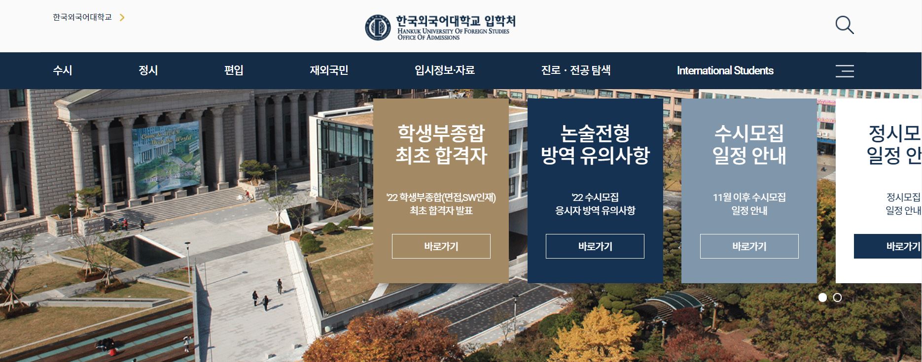 한국외대 입학처 홈페이지에 바로 접속하는 방법은 포털 검색창에 한국외대를 입력하는 것입니다.