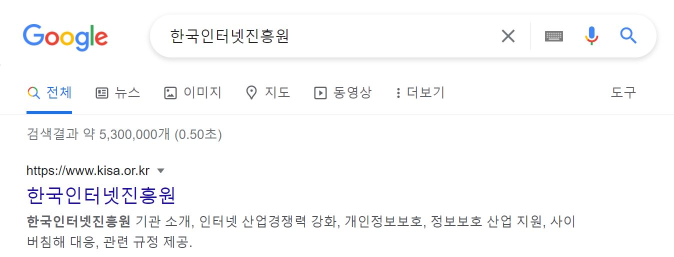 한국인터넷진흥원 홈페이지 접속방법은 평소 이용하는 포털 검색창에 한국인터넷진흥원을 검색하면 됩니다.