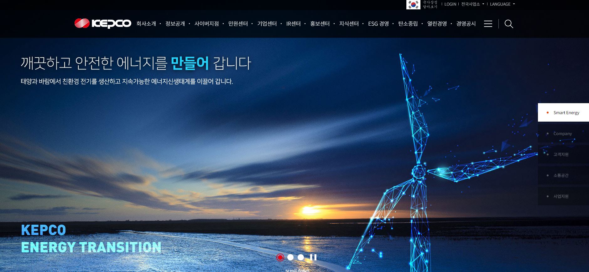 구글 검색창에 한국전력공사를 입력하고 나오는 주소에 접근합니다.