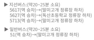 한국제품관리원은 독산역, 구로디지털단지역과 가까운곳에 있으며 독산역 이용 시 도보 이용, 구로디지털단지역 이용 시 버스승차를 하면 25분 이내로 소요됩니다. 이용 가능한 버스는 지선버스와 일반버스가 있으며 도보를 이용할 경우 독산역을 이용하는 것이 빠릅니다. (20분 소요)