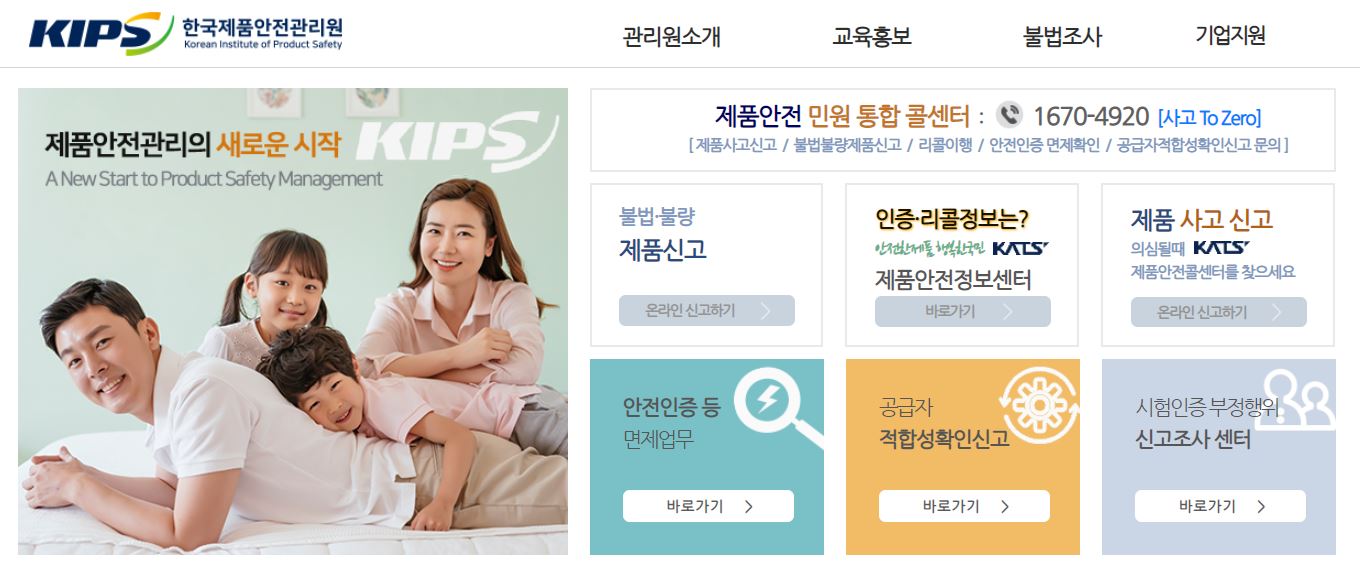 관련하여 문의사항 및 더 자세한 사항은 한국제품안전관리원 홈페이지를 참고하시기 바라며, 홈페이지 이용은 하단 한국제품안전관리원 홈페이지 바로가기를 통해 더욱 편리하게 이용하시기 바랍니다.