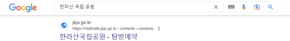구글이나 평소 이용하는 홈페이지 검색창에 한라산 국립 공원을 입력하고 검색하면 한라산 국립공원 탐방예약 홈페이지 주소가 나옵니다.