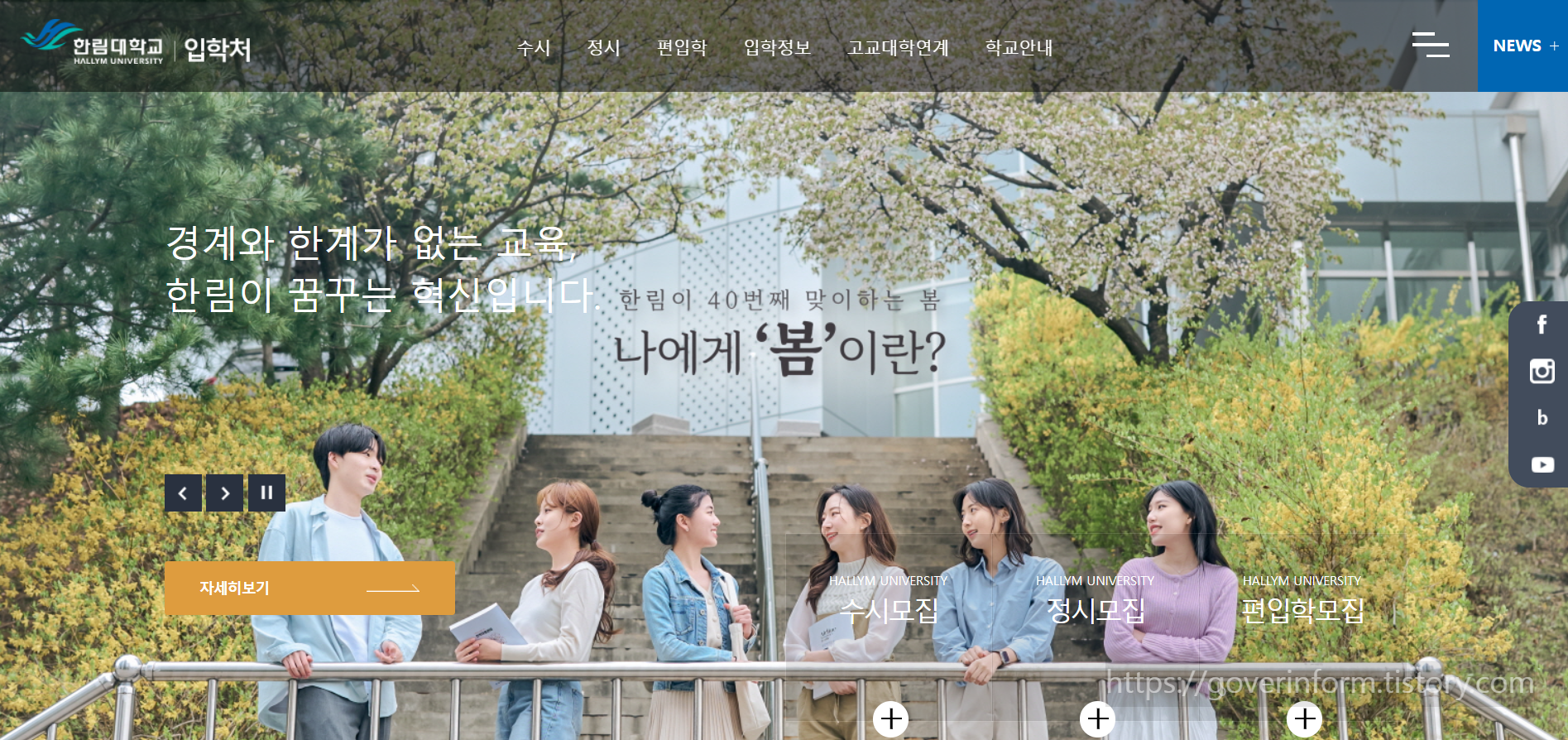 한림대 입학처 홈페이지 url -) https://admission.hallym.ac.kr/