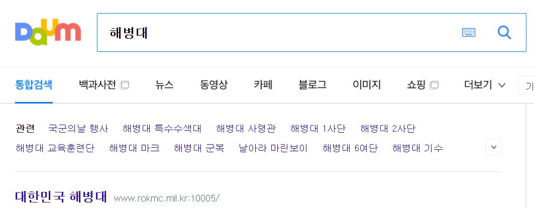 해병대 홈페이지에 접속하려면 포털 사이트에 해병대만 입력하면 됩니다.